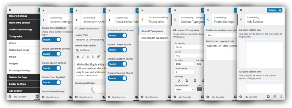Minimalist Blog Pro is fully customizable on theme customizer.